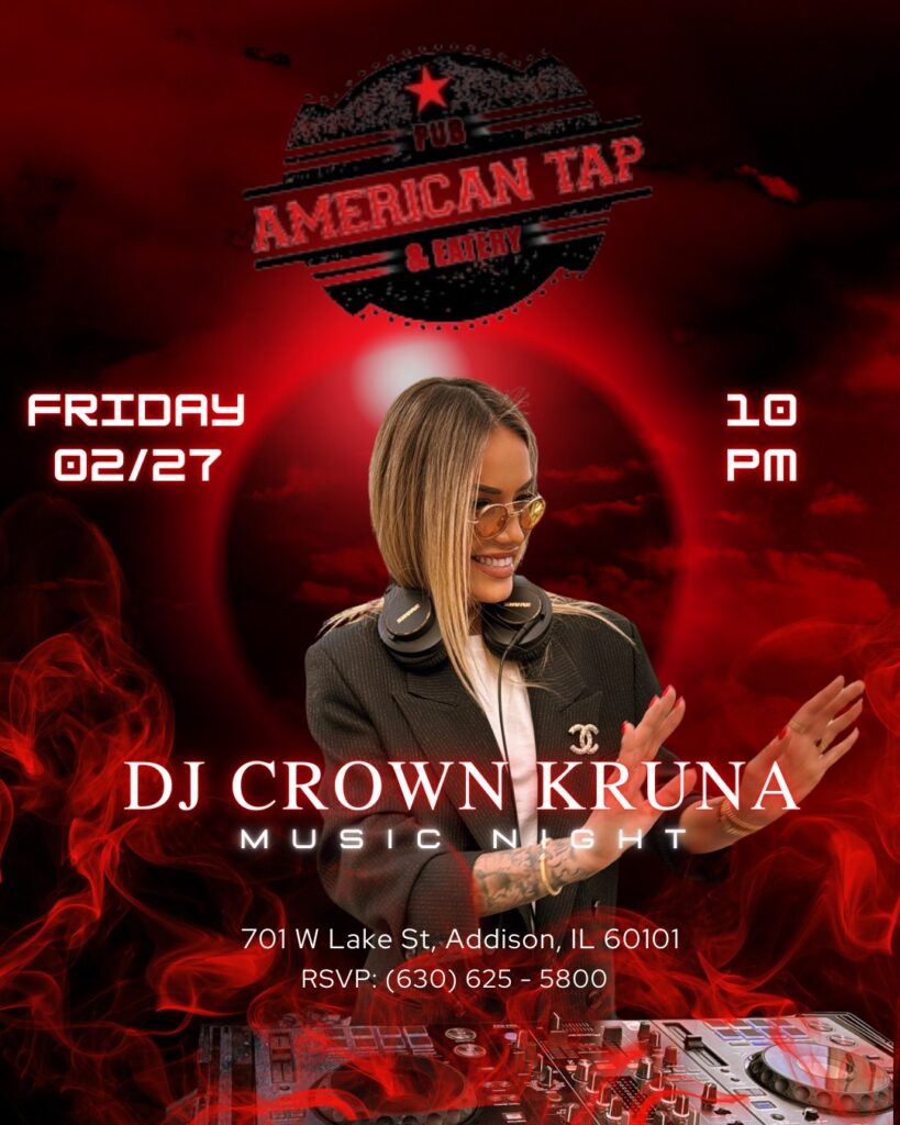 Spremite se za energičnu noć i vrhunski provod uz DJ Crown! American Tap Pub & Eatery Vas poziva da budete njihovi gosti na još jednoj nezaboravnoj muzičkoj večeri.
