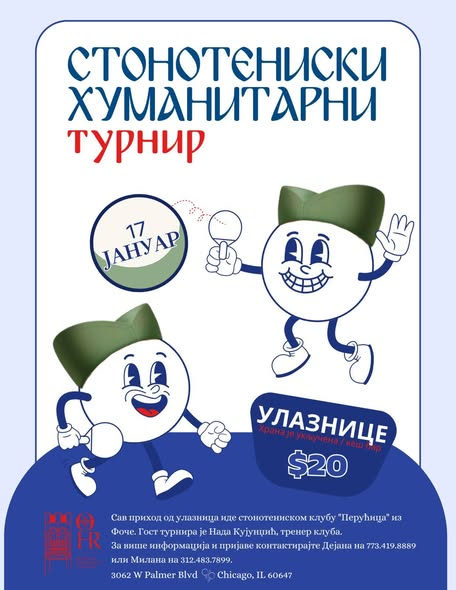 Pridružite se sportskom događaju sa humanim ciljem. U subotu 17. januara biće održan stonoteniski humanitarni turnir! Sav prihod od ulaznica namenjen je stonoteniskom klubu “Perućica” iz Foče.
