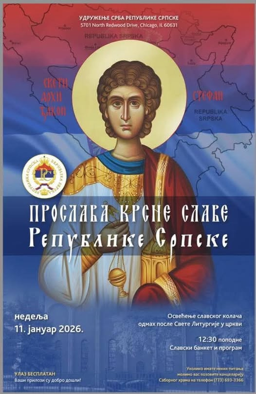 Udruženje Srba Republike Srpske Vas poziva na svečano obeležavanje krsne slave u Čikagu.