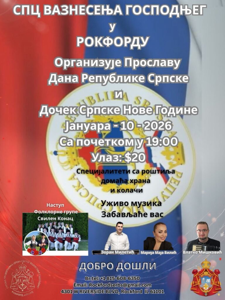 Crkva Vaznesenja Gospodnjeg (SPC) u Rokfordu srdačno Vas poziva na zajedničko obeležavanje dva značajna praznika uz bogat program i muziku uživo.