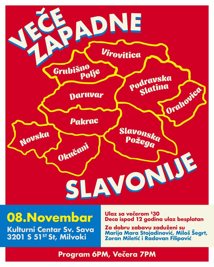 Milvoki će 8. novembra biti domaćin nezaboravne zabave pod nazivom „Veče Zapadne Slavonije“, koja će se održati u Kulturnom Centru Sveti Sava (3201 S 51st St, Milwaukee).