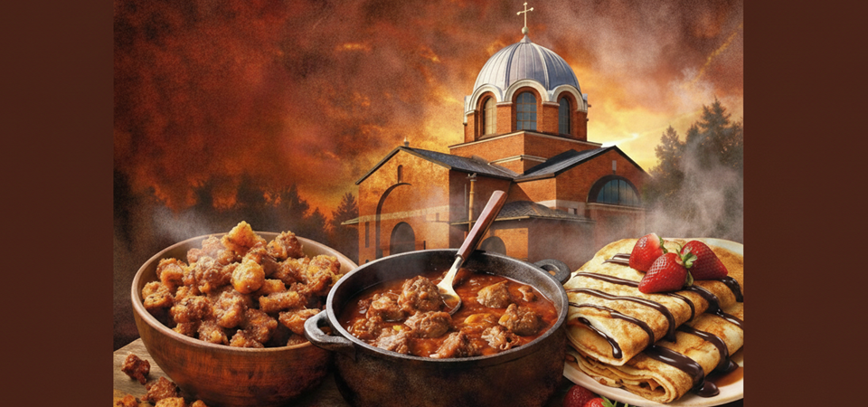 Veselo druženje uz tradicionalne srpske specijalitete u porti crkve Svetog Arhangela Mihaila. Dođite da uživate u domaćoj hrani i dobrom društvu! Subota, 31. januar, od 18:00h do 21:00h. Na meniju će se naći omiljeni domaći ukusi: - Čvarci - Gulaš - Palačinke Želimo Vam odličan provod!