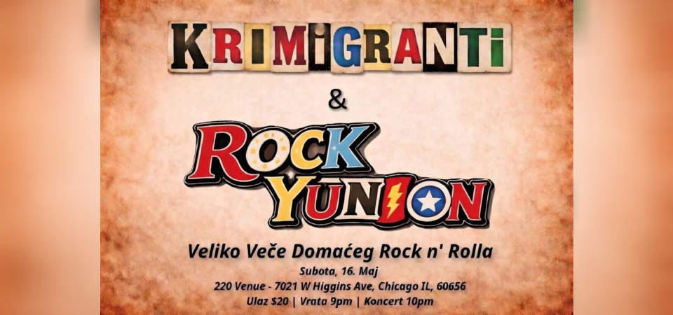 Veliko veče domaćeg Rock n' Rolla u Čikagu! Spremite se za opasnu svirku i neponovljivu energiju! Bendovi Krimigranti i Rock Yunion udružuju snage kako bi vam priredili noć ispunjenu najboljim ex-yu i domaćim rok hitovima. Ako ste željni pravog gitarskog zvuka i autentične atmosfere, ovo je događaj koji ne smete propustiti! Subota, 16. maj od […]